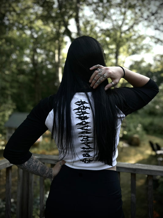 AS ABOVE SO BELOW Quarter Sleeve Gothic Spine Crop Top